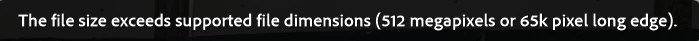 "this file size exceeds supported file dimensions"