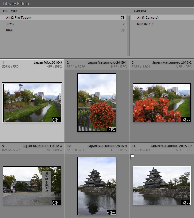 I've tried going to the library view and showing the metadata filter and trying to separate them using File Type as I've done since metadata filtering first became available in Lightroom, but it doesn't recognize the JPEG's as shown here: