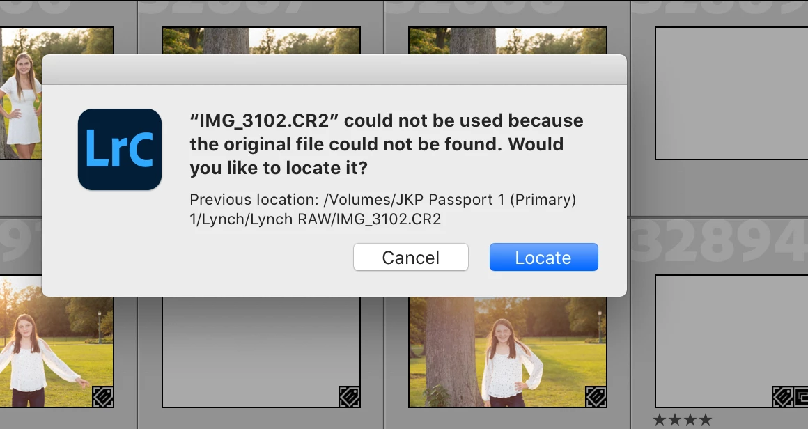 Trying to re-associate photos in Lightroom with a different drive