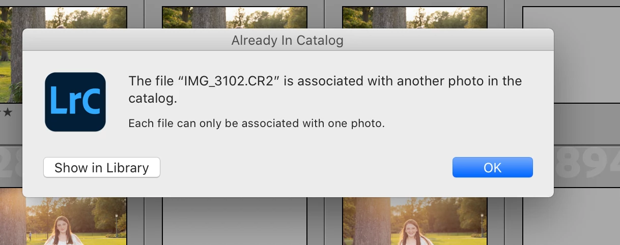 I am reimporting images from my memory cards and want to associate them with the newly created folders on my new drive, JKP Passport 2. But when I try to associate these images, I am told they are already associated with another photo in the catalog and can only be associated with one photo. They are associated with images on a drive I cannot access, however.