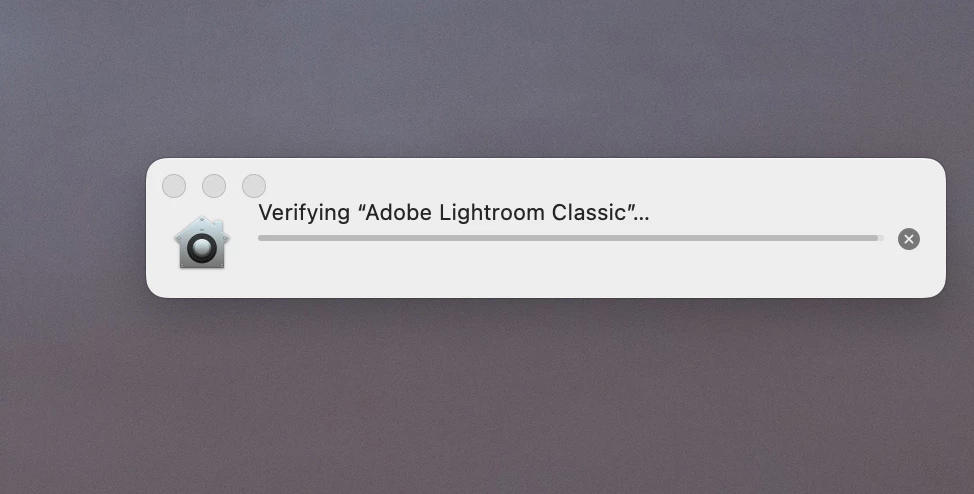 Turn off Verifying "Adobe Lightroom Classic" Status Bar on Mac