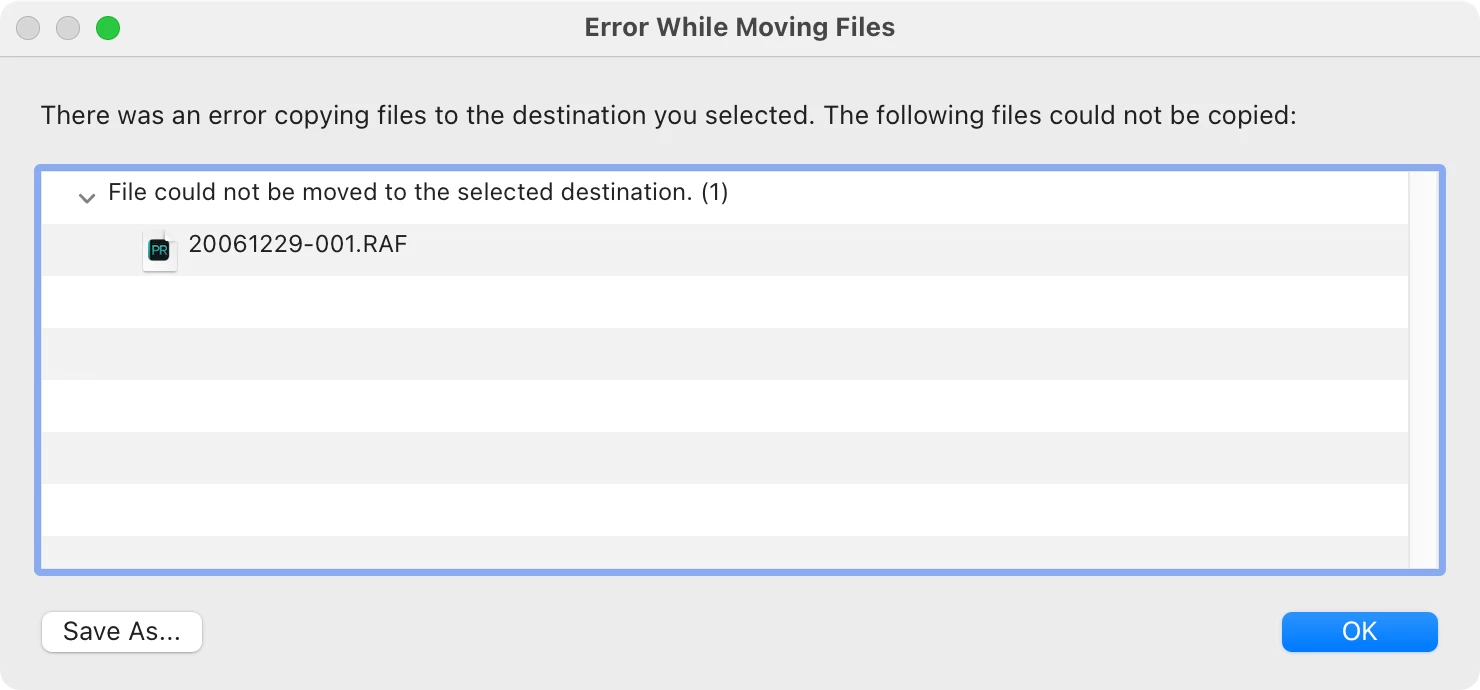 - Tried moving a raw file with xmp and jpeg sidecar files as well as a single jpeg file, both of which failed.
