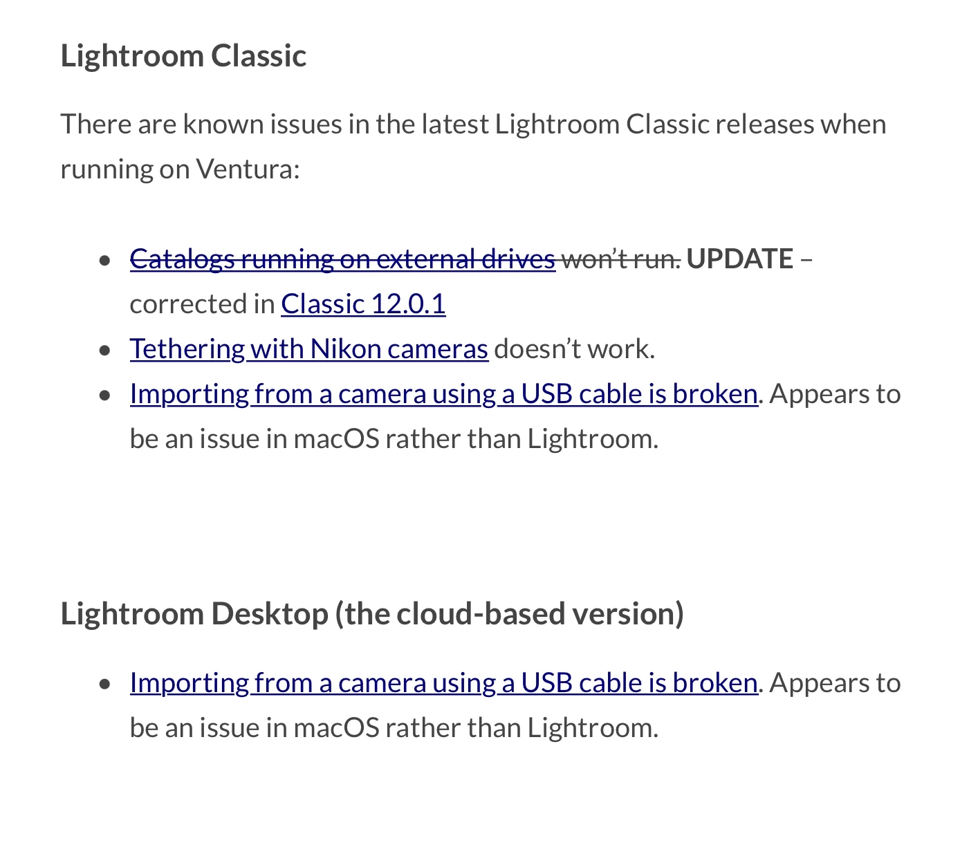 Currently running the most recent Lr version as at 4th November and running Mac OS Ventura.