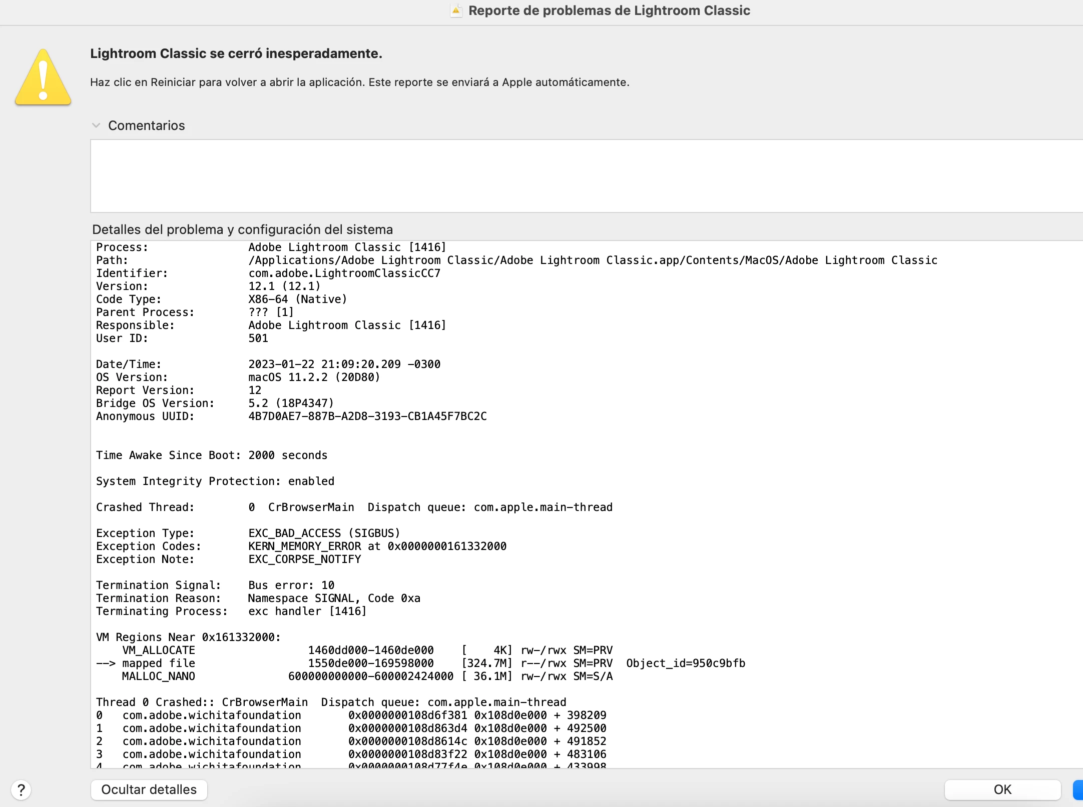 I had Lightroom classic open and my Mac ran out of battery. When I plugged the computer and try to opened it I couldn't do it. I restarted the Mac, I updated Lightroom to it's newest version and I still can't open it.