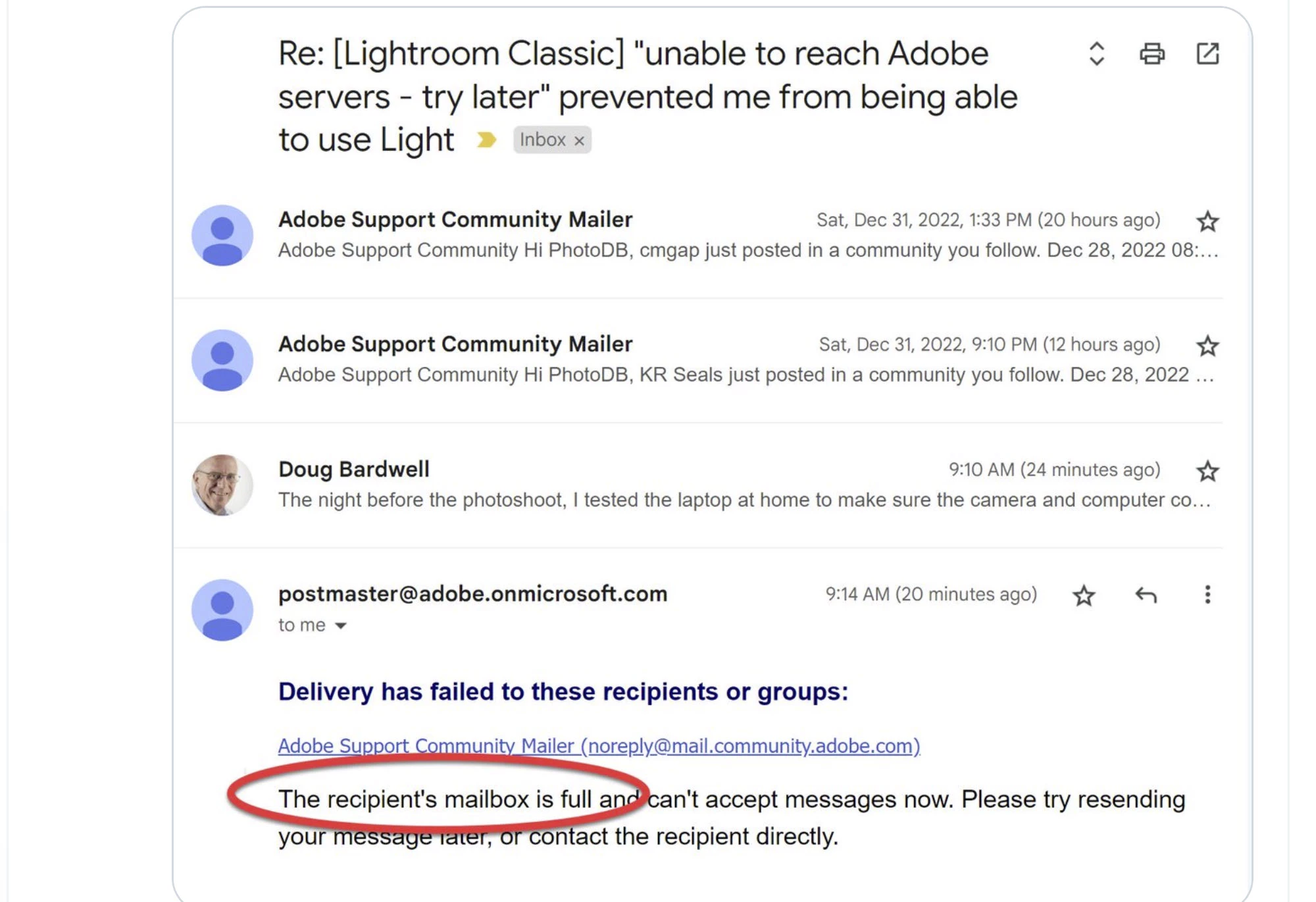"unable to reach Adobe servers - try later" prevented me from being able to use Lightroom classic