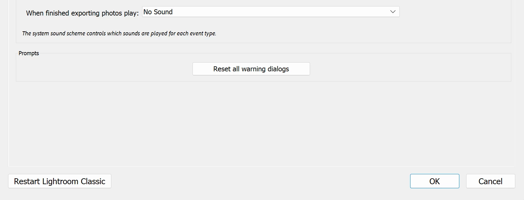 Cannot scroll down in the Preferences menu (Edit<Preferences). Any changes I try to make cannot be saved, as I can't scroll down far enough to hit the save button. Tried resetting the settings when re-opening Lighroom with (shift & ,), does not fix the issue. There is no scroll bar, and neither mouse or trackpad scrolling is working. Tried everything I can to make enough space on the screen to see the save button, but it is not working. Nor do I have a monitor to connect to to give the screen more space.