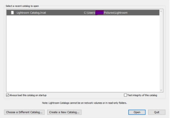 So, "Choose a Different Catalog". Where is it ? I didn`t find different catalog. I just finded Lightroom Catalog.lrcat  and it doesn`t work.