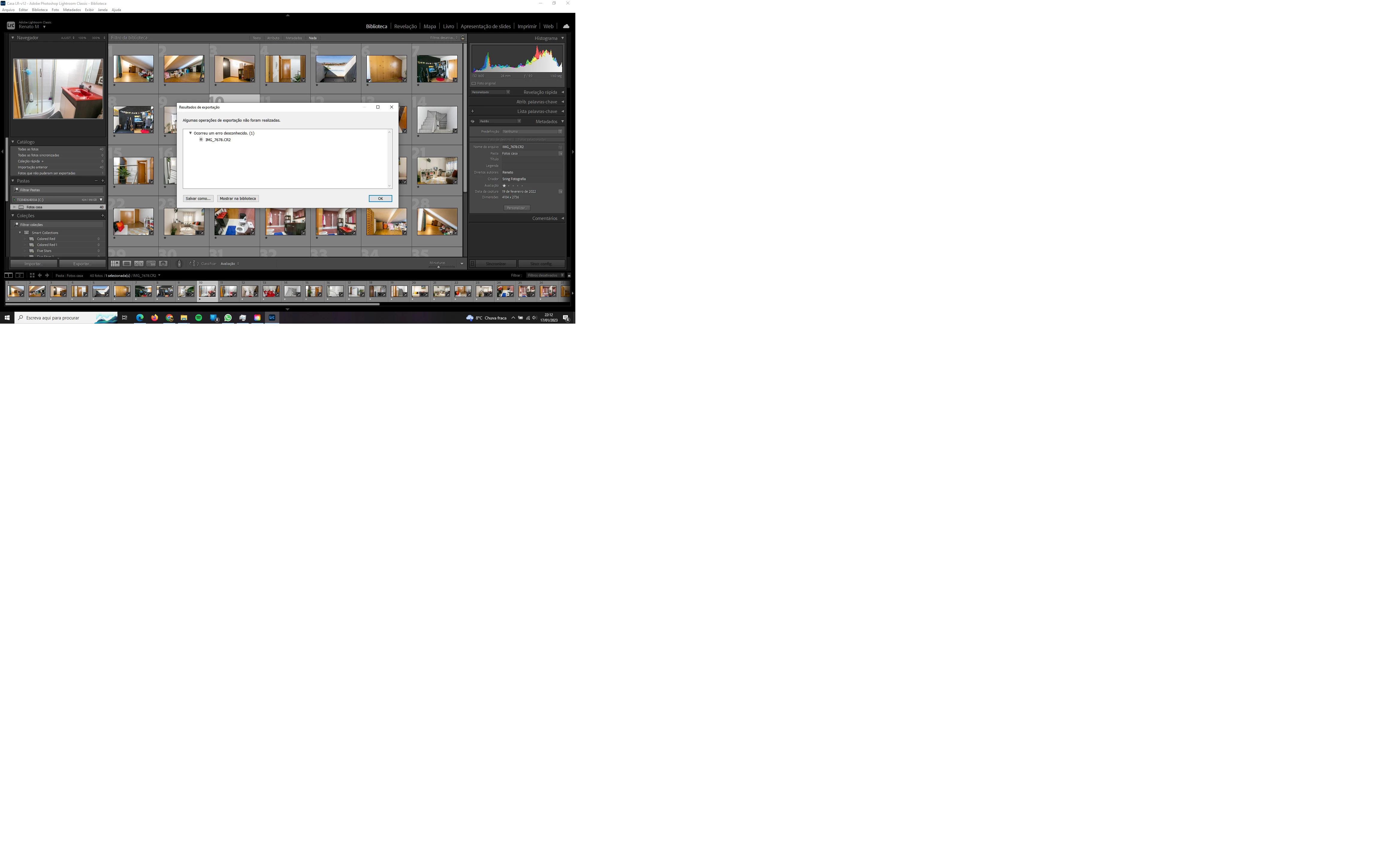 suddentely, i cant export my photos. LR gives me un unkow wrror, so, i dont even know what the problem is. i re-installed, I gave the PC to an IT colleague, that reset some settings, and it worked 3 times. after it, it stopped exporting again.