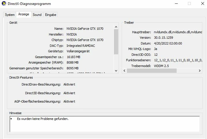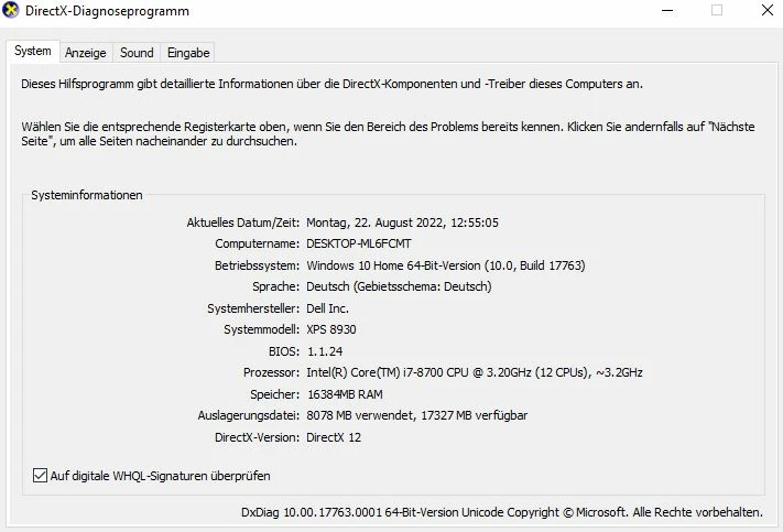 Ich habe Screenshots gemacht von DirektX und was mein PC alles hat. Ich finde den Fehler nicht.