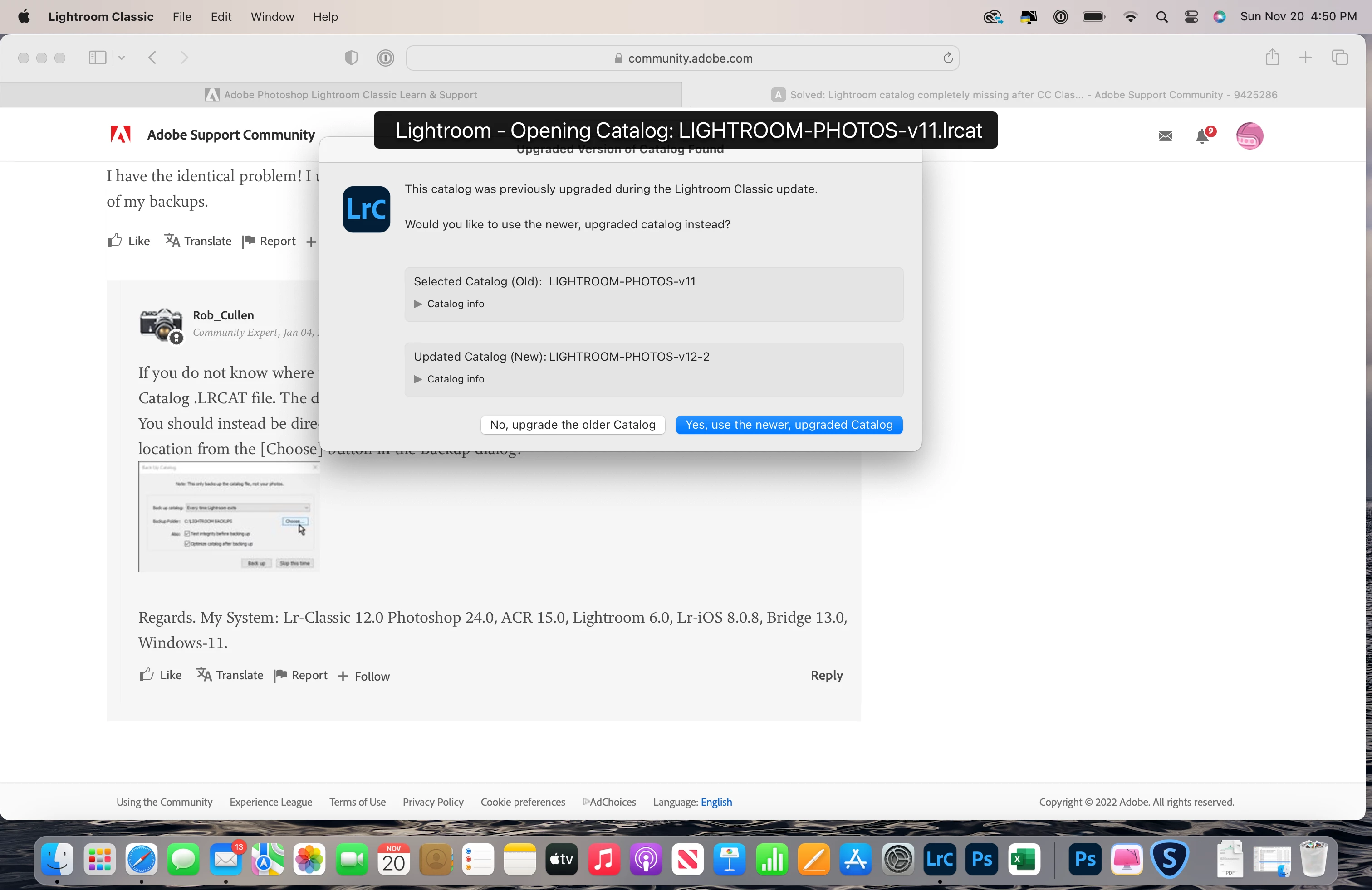 Updated Lightroom Version 12 Catalog issues