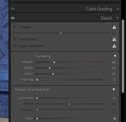 - Select new Denoise (or Raw Details) from Detail develop panel
