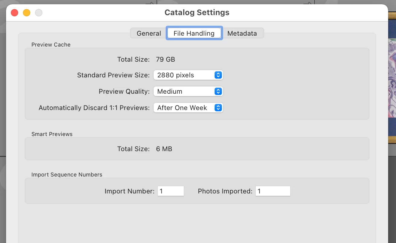 Your Catalog Preferences can control the size of the Previews Data file. As you can see from the screen capture I have chosen to use a specific size and not standard previews. If I had used Standard Previews the file would have been over 250 GB. My Catalog contains 51,000 images.