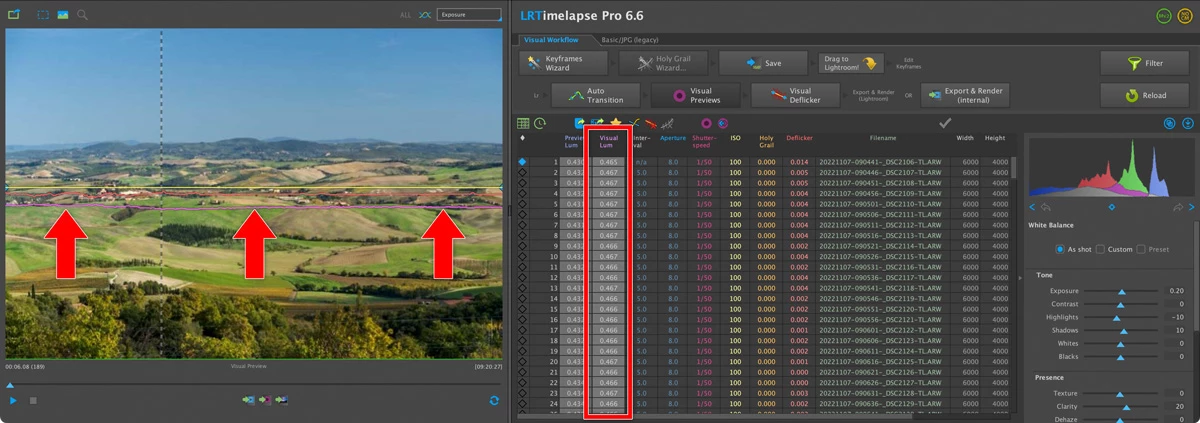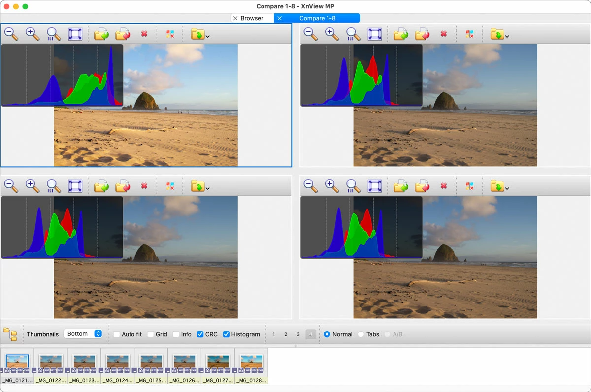 Does anyone know if it is possible within Lightroom/Photoshop or with a Plugin to view each individual histogram for multiple images at once? I'm interested in comparing the light and colour properties of all images in an album and would love to be able to view this data in a list-like view. Any help would be appreciated.