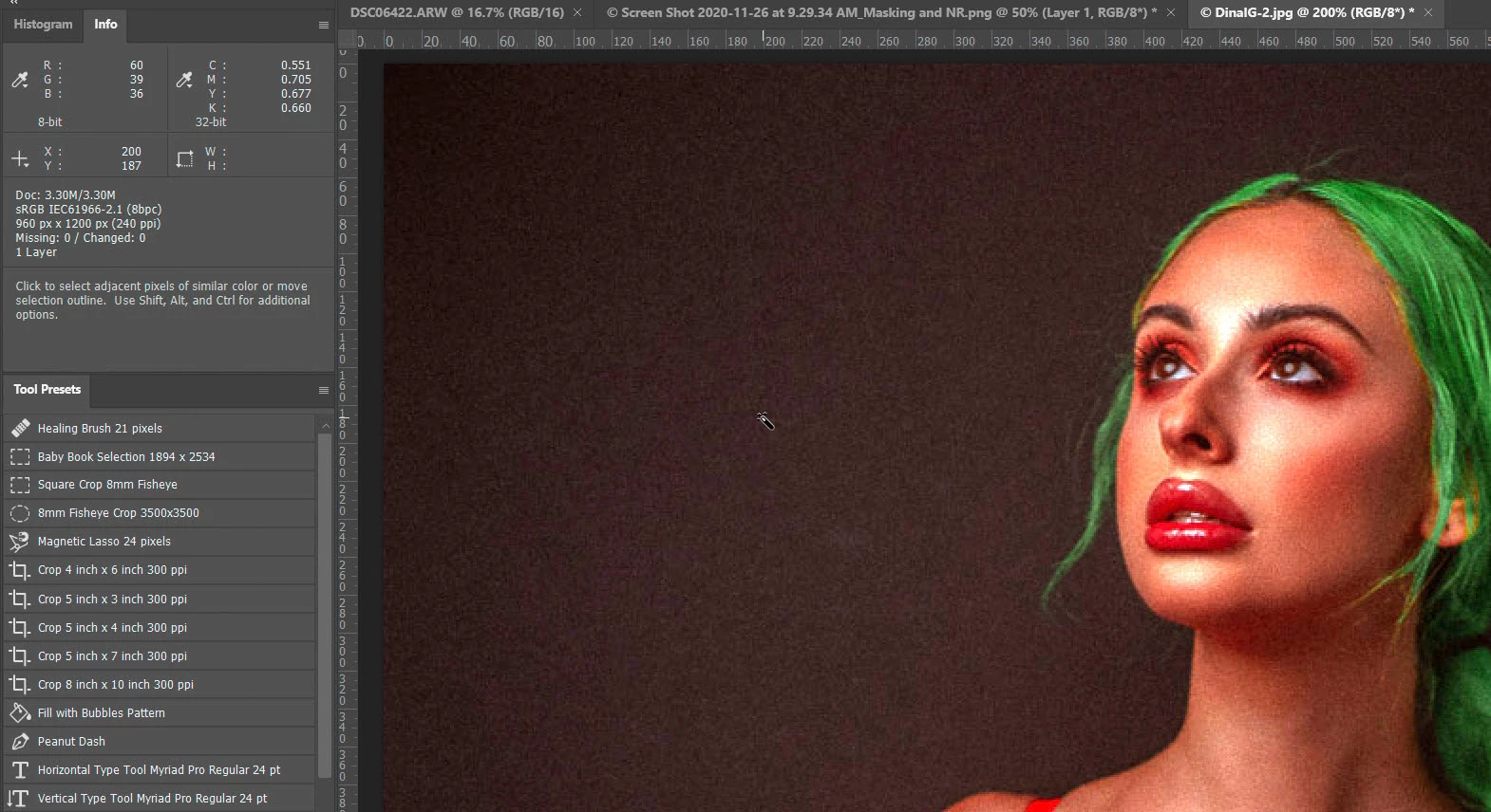 Im wondering if there is any way to rid this image of this weird digital "noise""banding" to left side of this image? I have attached the edited and unedited image. The images are slightly censored aswell fyi. I shot this image at 200 iso. I spend a decent time editing these and when I exported the finished images and added a bit of grain to them these looked really bad around those shadowy areas.