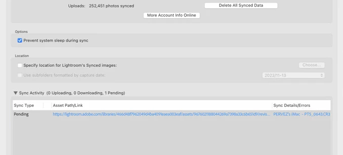 For further information, the asset path/link when I click on it, takes me to the the Lightroom Cloud website for the image, but the image never populates. If I could just simply delete the file I would but I am unsure if that's a possibility. I am just looking for the path of least resistance to resolving this single file being stubborn/lost, and if it will require me to use the Rebuild Sync Data function, I'd like to know more about if it's going to affect all of my currently synced photos (in any way).