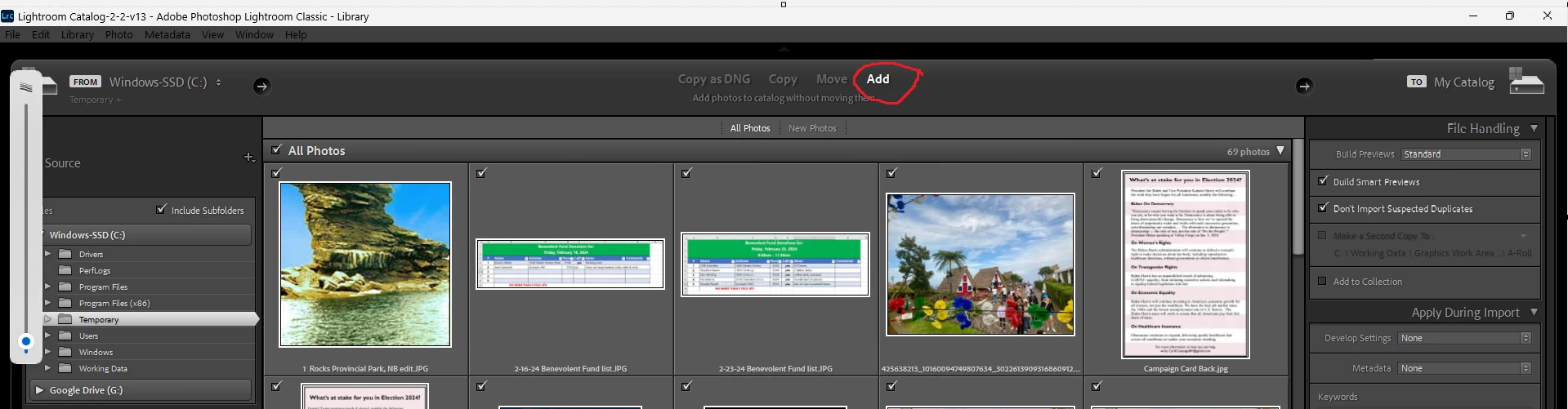 I import images sometimes that I've scanned, and they're already in my macbook pro. But the import function in LRC always wants a destination. When I send the imports to the same folder, it makes duplicates, which can lead to some organizational issues. Any ideas?