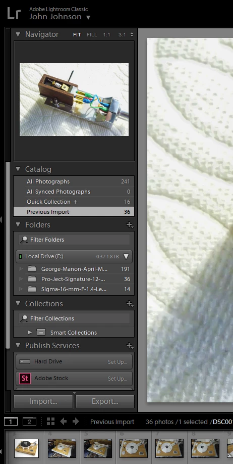 https://forums.adobe.com/people/John+Johnson+10 wrote I browsed to the folder that I wanted to add photos to the open catalog, and all the photos in the open catalog at the bottom horizontal photo bar disappeared. Only the new photos from the folder where I wanted to import photos from were visible. No photos from the open catalog. |