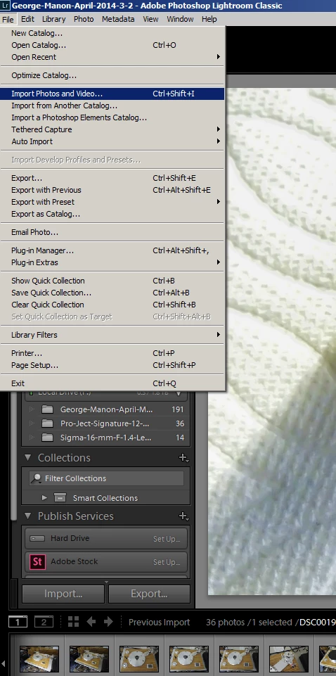 I selected Import and only the photos from the new folder were now visible. None of the photos from the originally open catalog were visible in the horizontal photo bar at the bottom. So, the active catalog's original array of photos were gone.