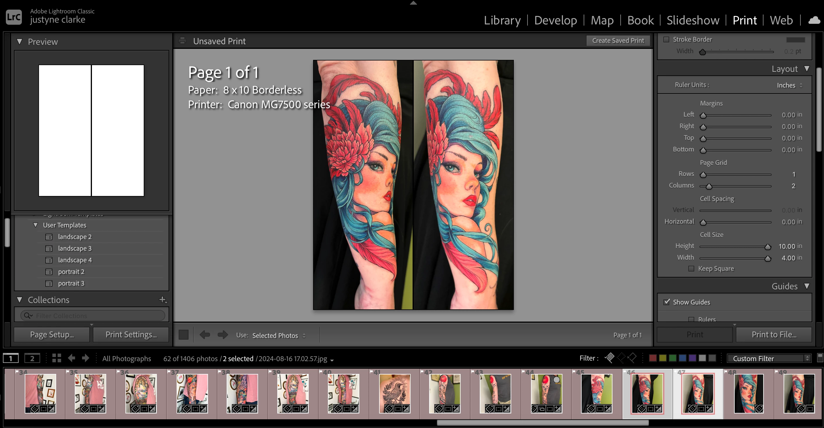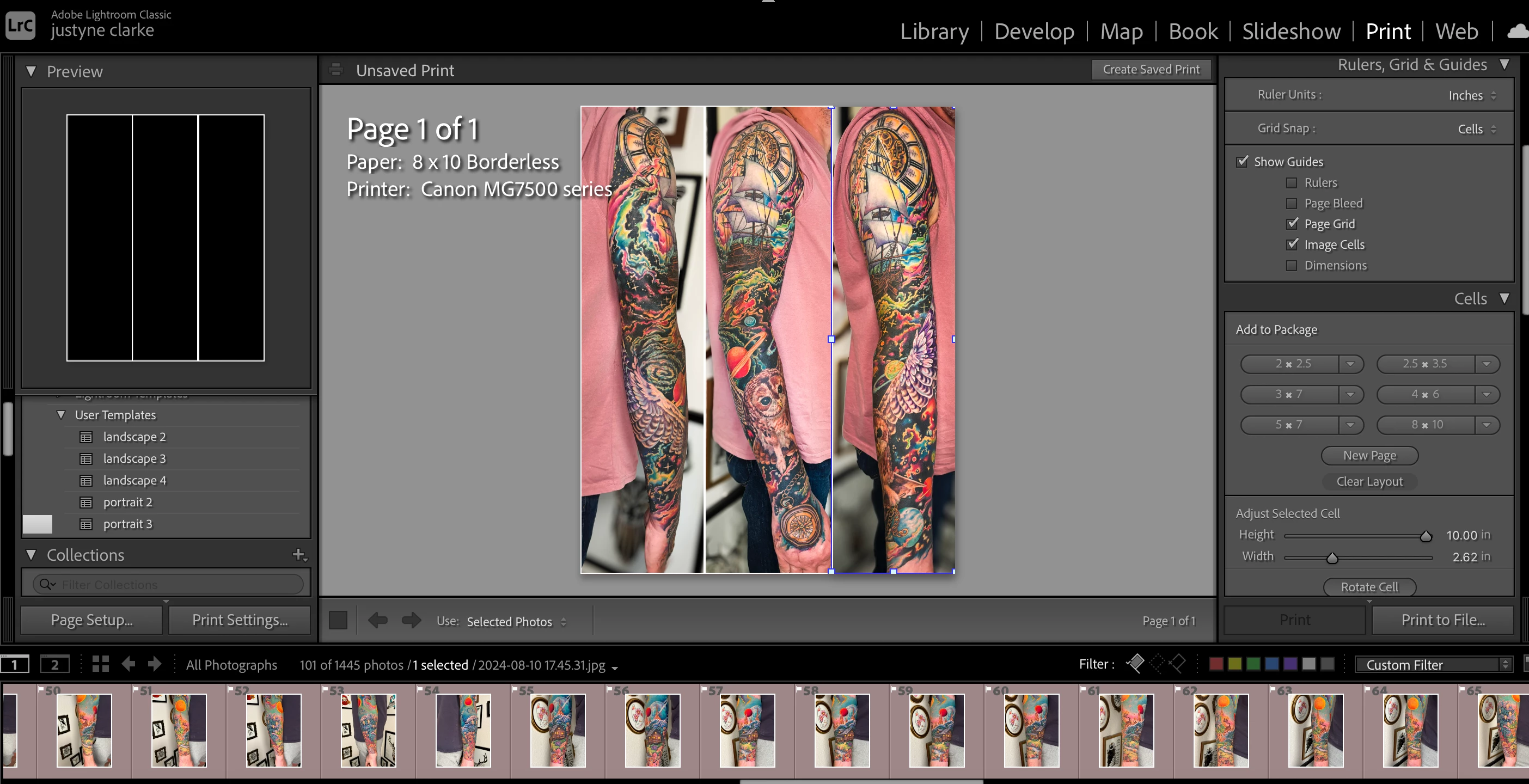 I am trying to print to file some montage images and have set up some custom templates to do so. I position the photos in the cells using Command/drag and it looks like the screen shot below but when I print it to file the images have moved position again - see second image. this happens even when i do not have to command/drag move the original image in the cell. Can someone please help me and tell me what i am doing wrong?