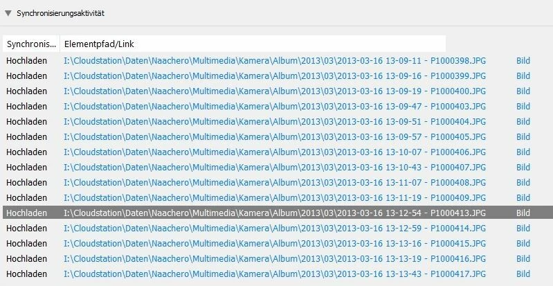 Die Synchronisation wird mit dem grünen Haken als abgeschlossen markiert. Dennoch bleiben etliche Bilcder in der Warteschlange wie nachfolgendes Bild zeigt. Alle einzeln in dieser Maske zu löschen ist zu Aufwendig.