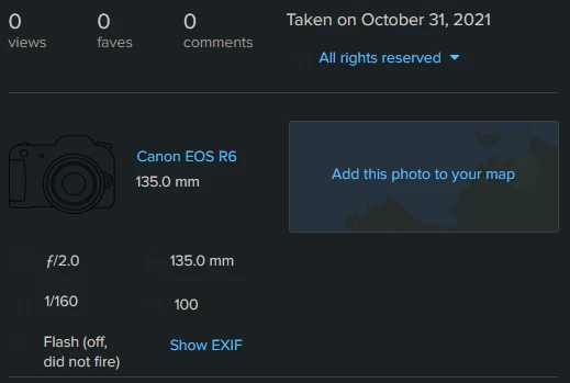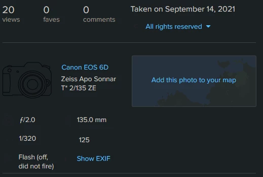 Ever since I got my Canon R6, Flickr won't display lens information in case 3rd party lenses (in this case Zeiss) are attached. I see this: