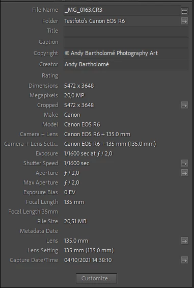 - In Lightroom, the lensinfo shows correctly for the following combos: 6D+canon, 6D+Zeiss, R6+canon