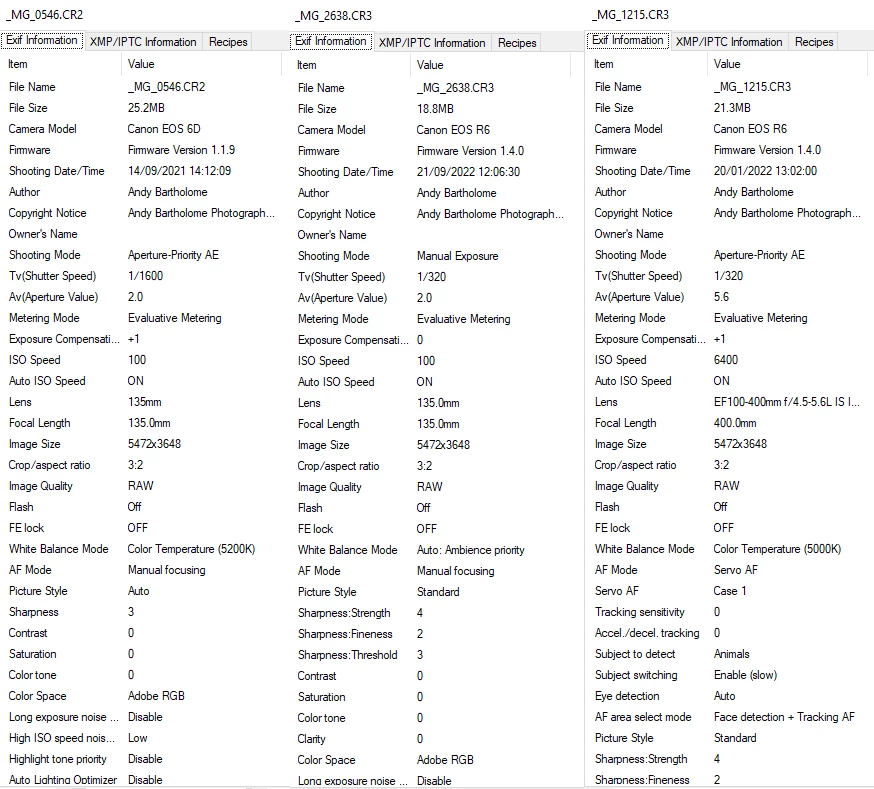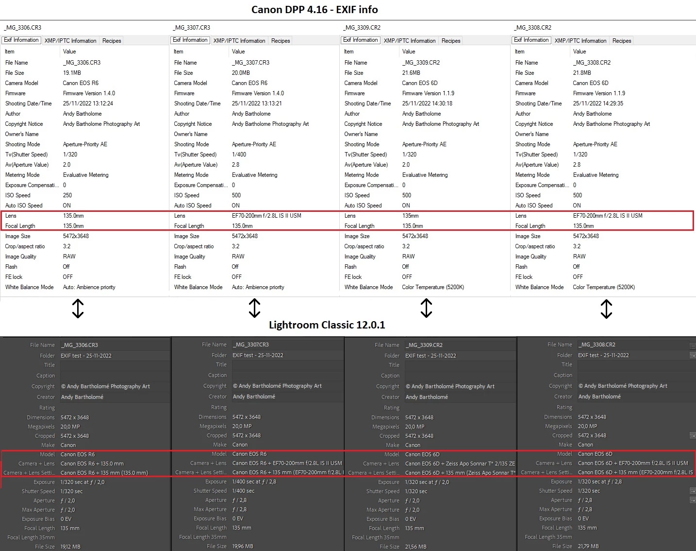 I also checked what I see in-camera (in case of the R6, because the 6D does not show lensinfo when playbacking images).