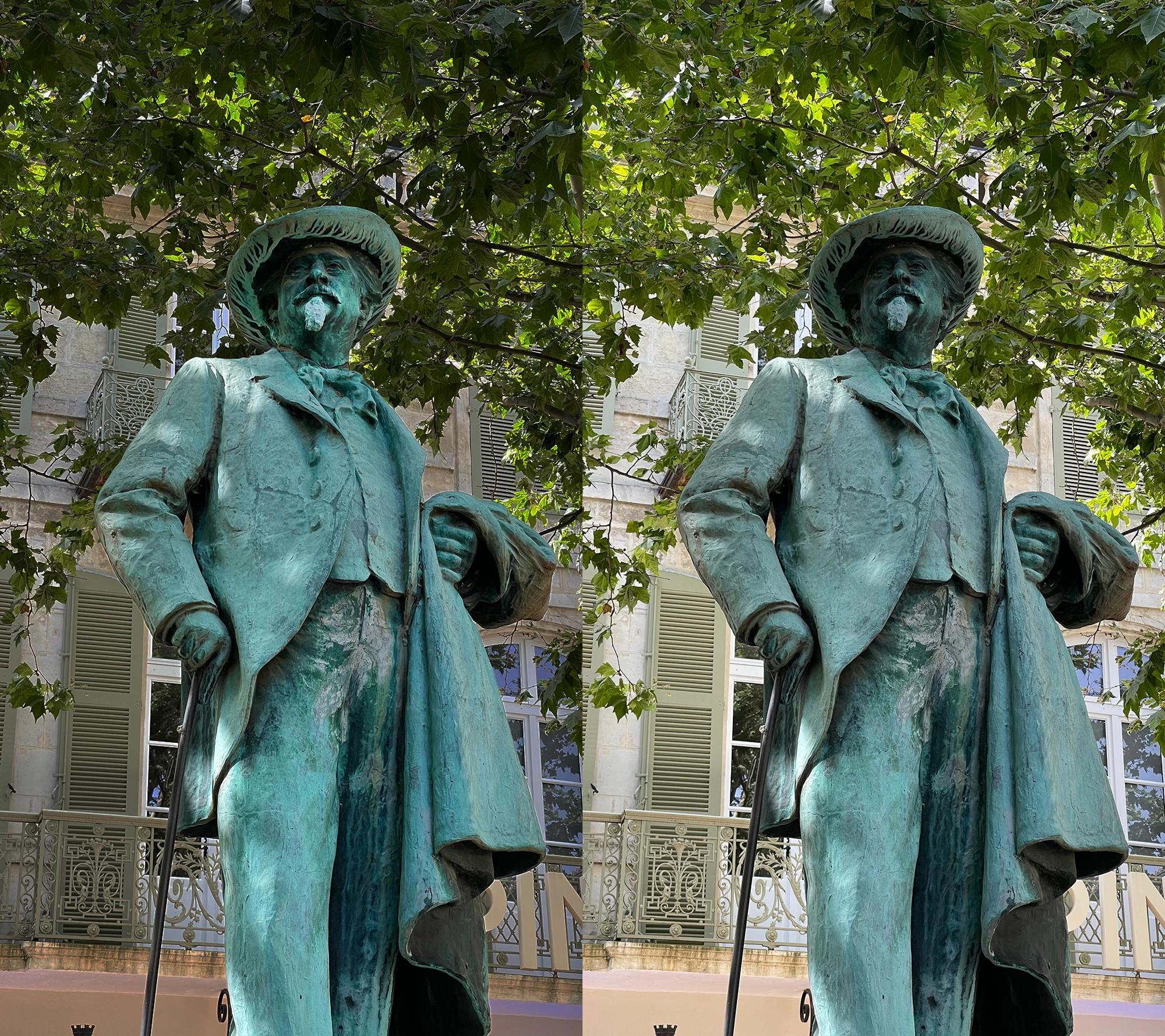 Be aware of the background: here the statue of Vincent Van Gogh was under shading trees and a light background.