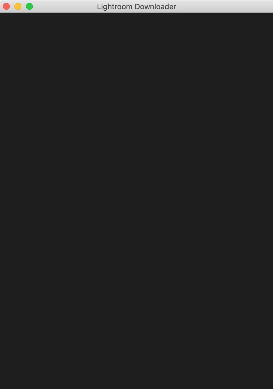 The Lightroom Downloader does not start correctly. I get a grey screen where I assume the login screen should show up.