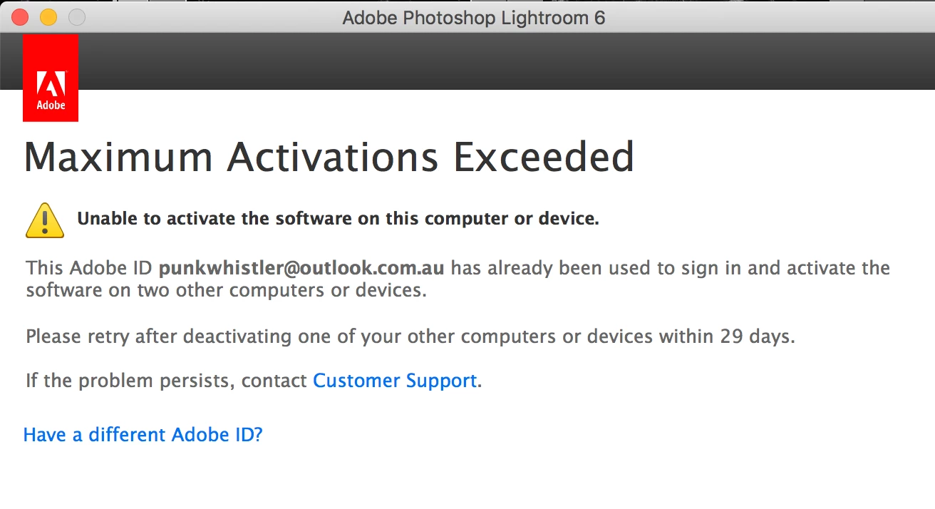 After changing account email I cannot deactivate Lightroom 6