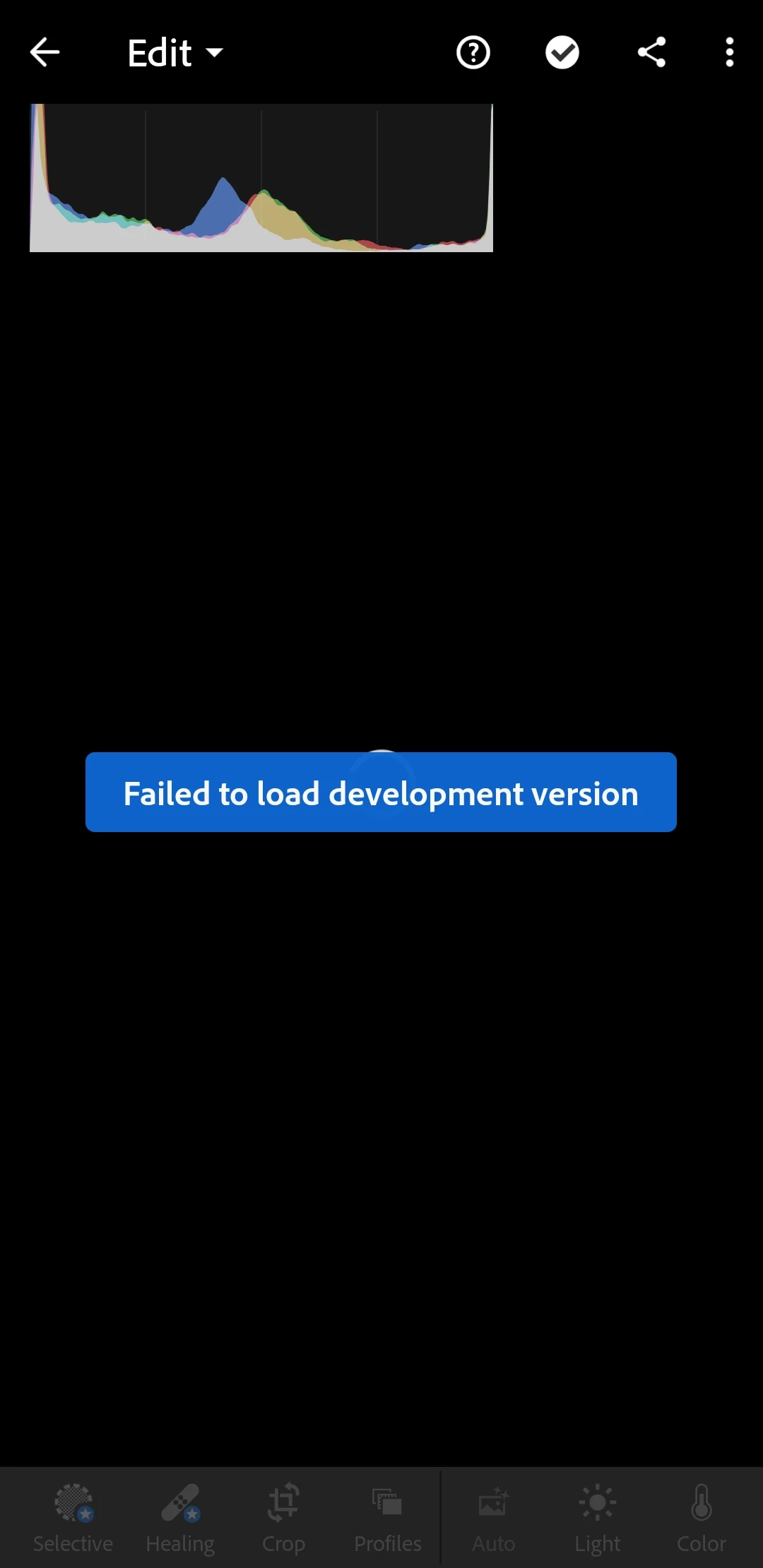 last week I was going to import a pic on the lightroom app on mobile. For an entire day and a half, it didn't work, then he worked but all the presents and the photos are black (like if the app can't show you the photo) and if you try to open the present or the photos it remains black and say ''fail to load development version''. The only thing that I can see is the last picture that I import after this thing that happened. The version that I have is the 5.4.1 one and I have the app on an Android.