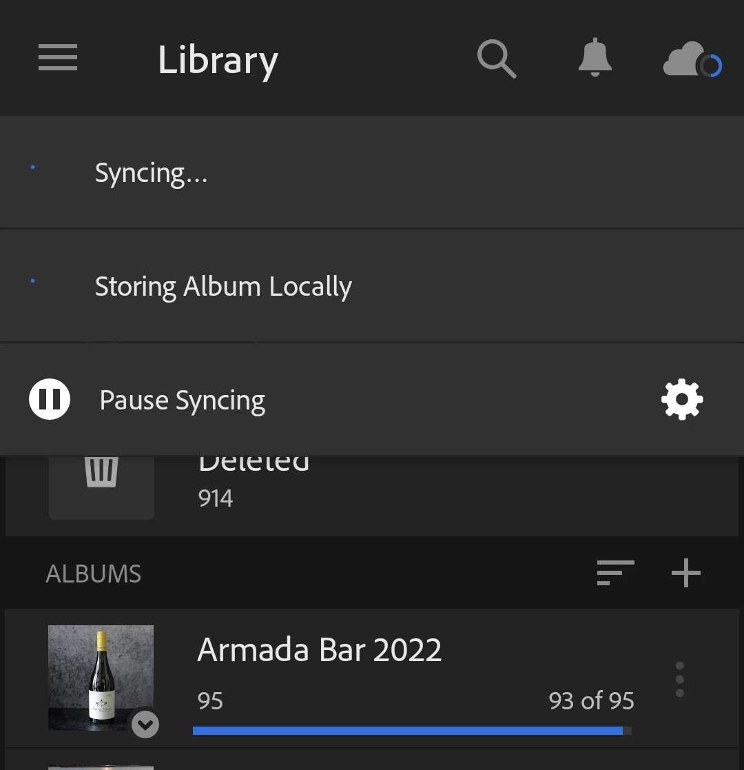 Android Mobile Stuck on Storing Album Locally