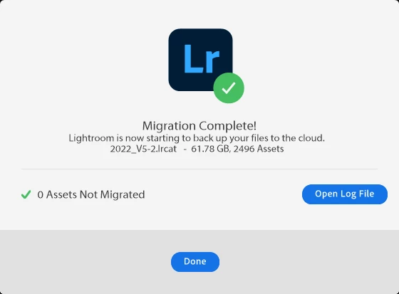 Assets Migrated to Lightroom : 0