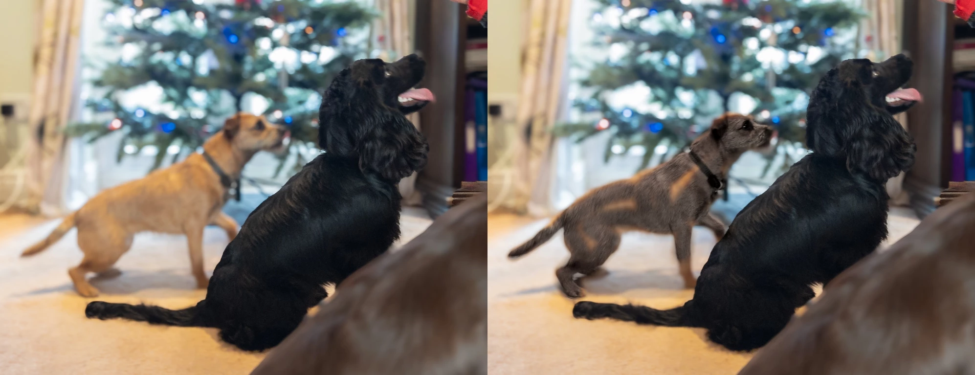 I applied a Lens Blur refinement focus brush on PC ( not available on LR mobile ) that worked OK on the rear dog on PC, but when synced to LR mobile the brushing over the dog showed as a shadow as well as focus refinement. See before / after screenshot looking at rear dog.