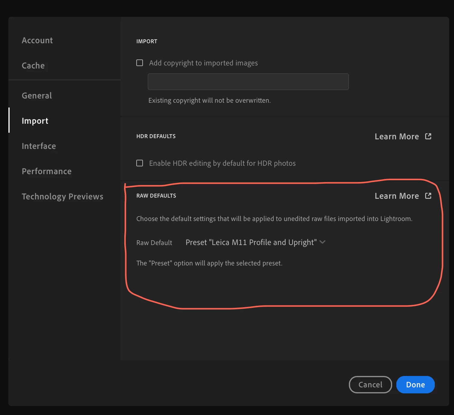 I created a preset which changes profile and uprights photo and would like to get this preset applied on new photographs when they get imported.