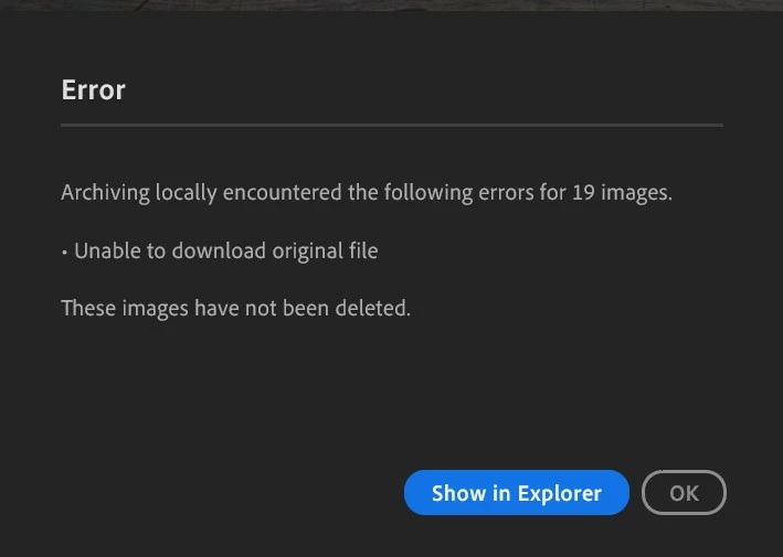 When I try to archive an album locally in Lightroom (version 7.4.1) I have an error message that said: