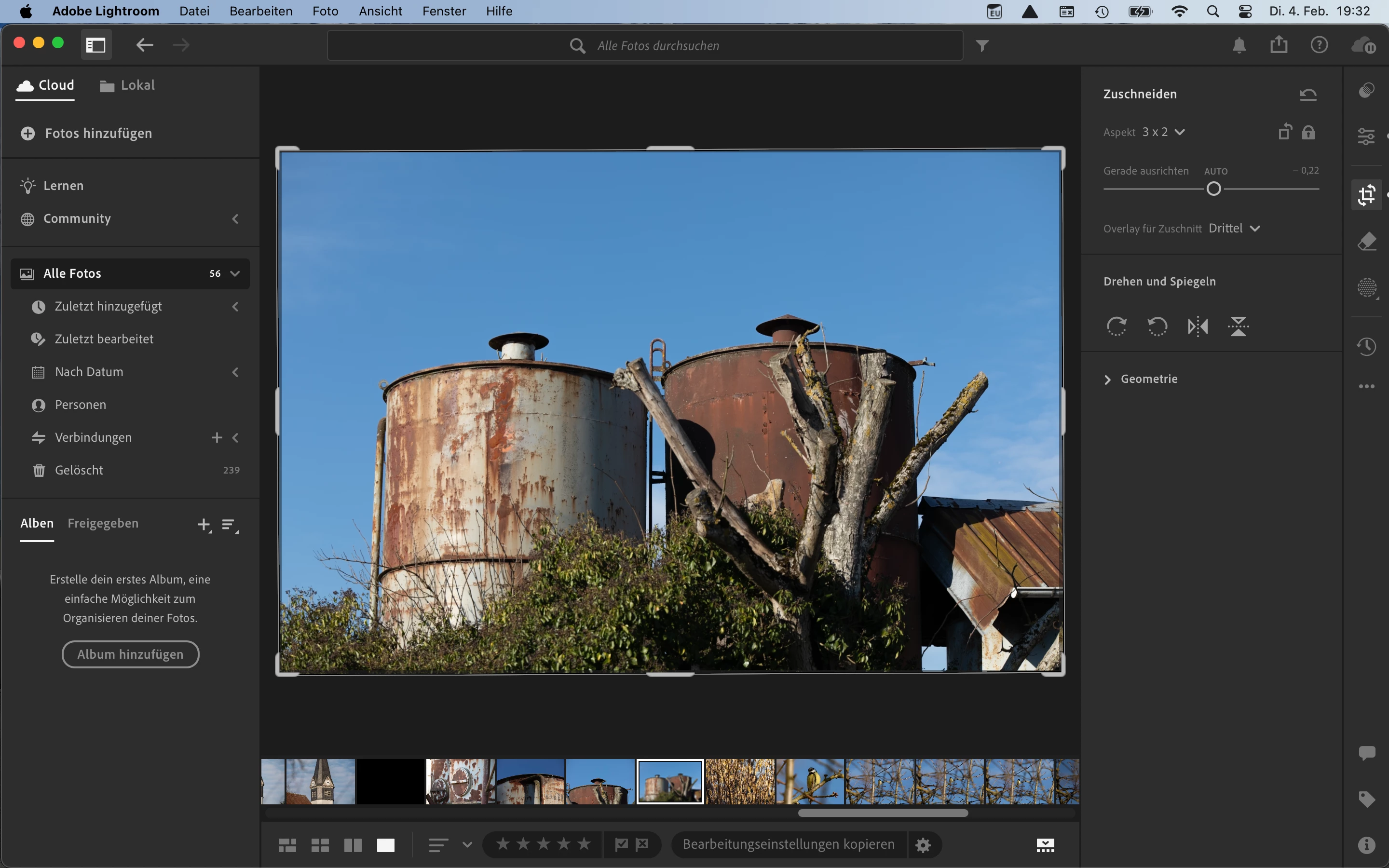 Öffne ich das Bedienfeld um das Bild zu beschneiden, sehe ich da komplette Bild.