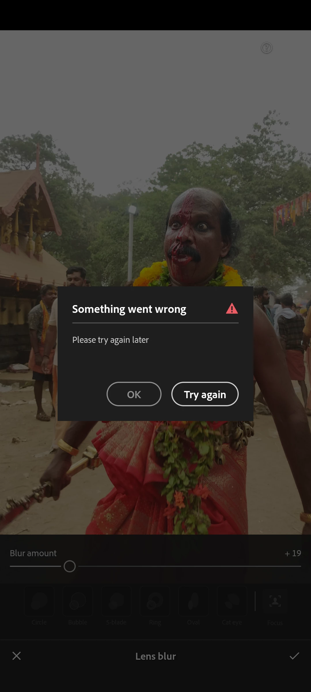 When I use blur effect .not working and notify on the inter face something went wrong