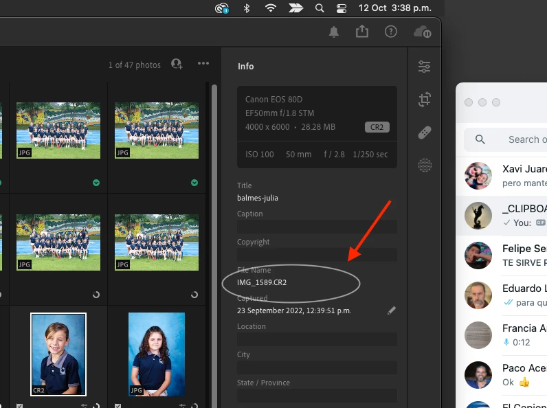 En Lightroom tengo una serie de fotos agregadas. Quiero cambiar el nombre sin tener que exportar nada. Para identificar a cada persona durante la edición.