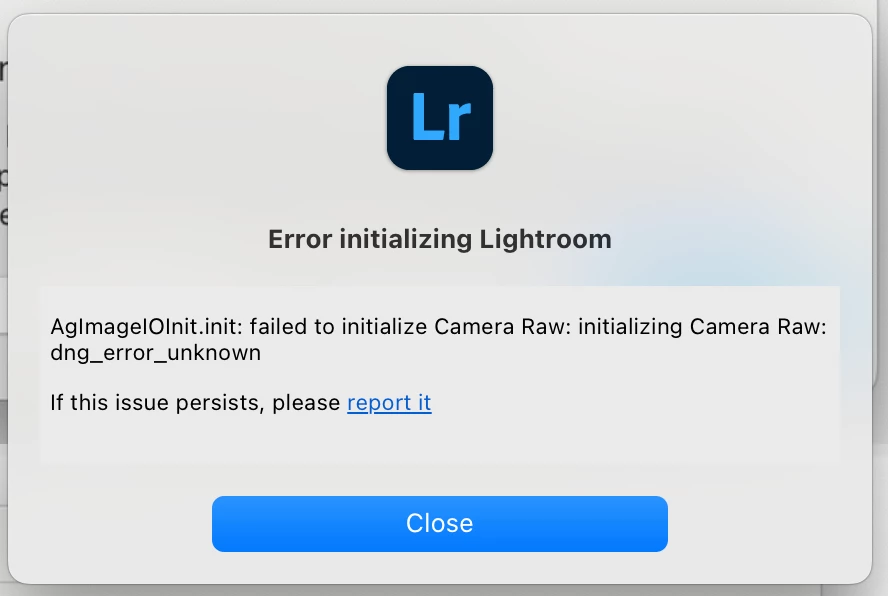 For over two weeks now I have not been able to open Lightroom on my new MBP M3 Max. I have reinstalled three times, run the cleaner app, and reinstalled Creative Cloud, but nothing is fixing the issue - Camera Raw fails to initialize.