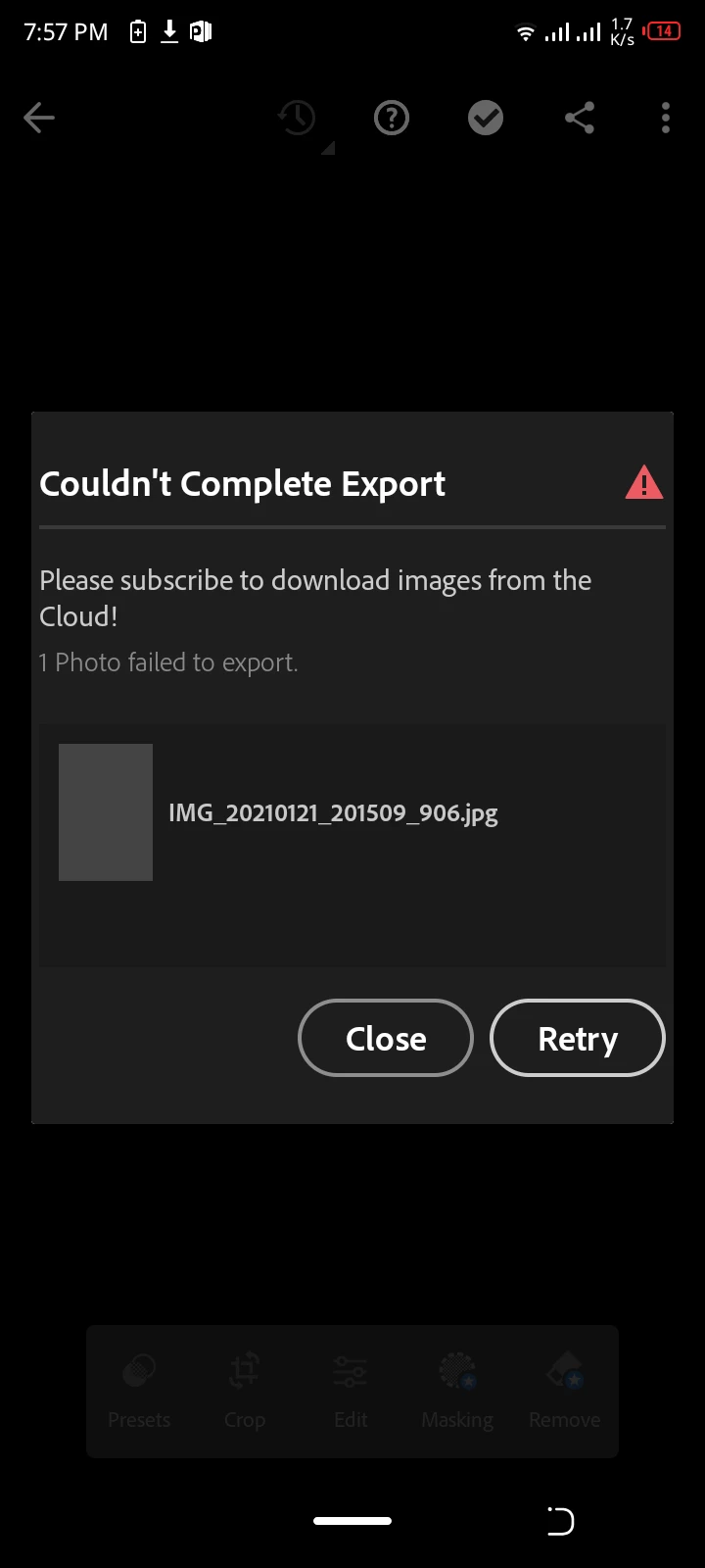 • Try adding a star rating or flag to the images you see this error with. Wait for a couple of seconds and check if the issue exists.