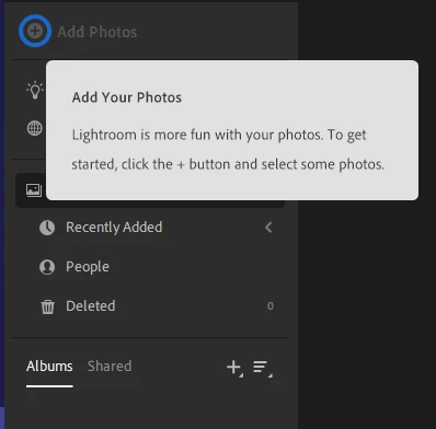 550caliberParticipantForum|Forum|4 years agoApril 27, 2021QuestionCan't add photo in lightroom?Forum|Forum|4 years agoApril 27, 20210 replies114 viewsThe "Add Photos" button on the top left is un-clickable. I can't add anything.... How to fix?? I tried reinstalling but it's still the same... I added a screenshot of what it looks like How toProblem or error