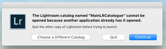 I've deleted the .lock file and it appears to have deleted successfully. Then when I open lightroom and choose to open that catalogue I get the error message again saying another application already has it opened. So, when I go back and look the .lock file is there again. I have tried this several times and the .lock file always magically reappears. I have also gone into my trash and made sure it is deleted in my trash and not hanging around.