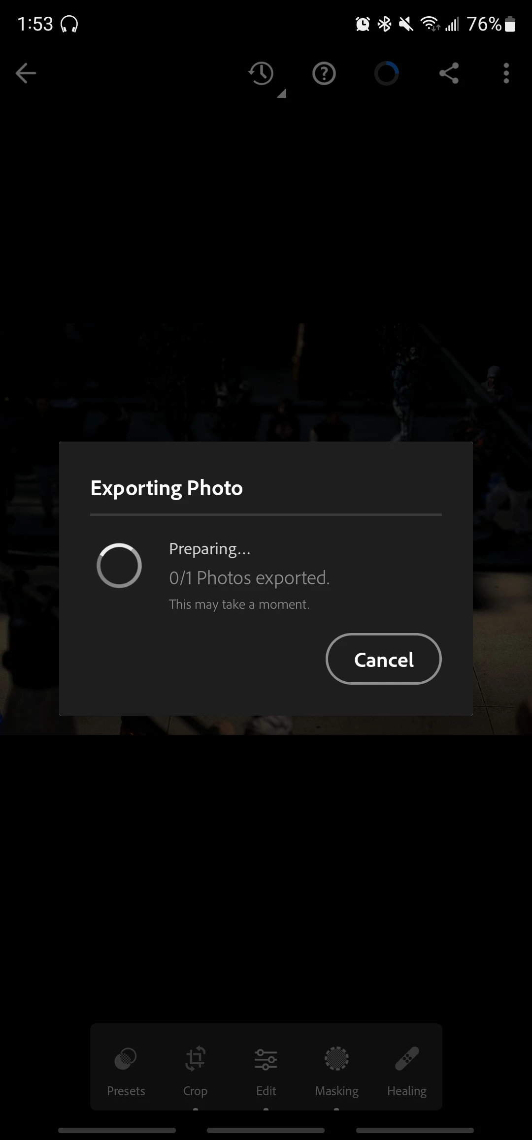 Can't get help with lightroom android refusing to export photos. Ideas?