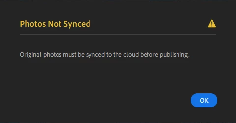 I know there have been other posts related to this issue but I cannot seem to find a fix. I do not use LR classic so I don't believe there's any interference there. When trying to share to Portfolio I simply get the message "Original photos must be synced to the cloud before publishing". I am positive that the full original is backed up, not just the smart previews (screenshots attached). Please help this is getting frustrating with a service I pay a lot of money for.