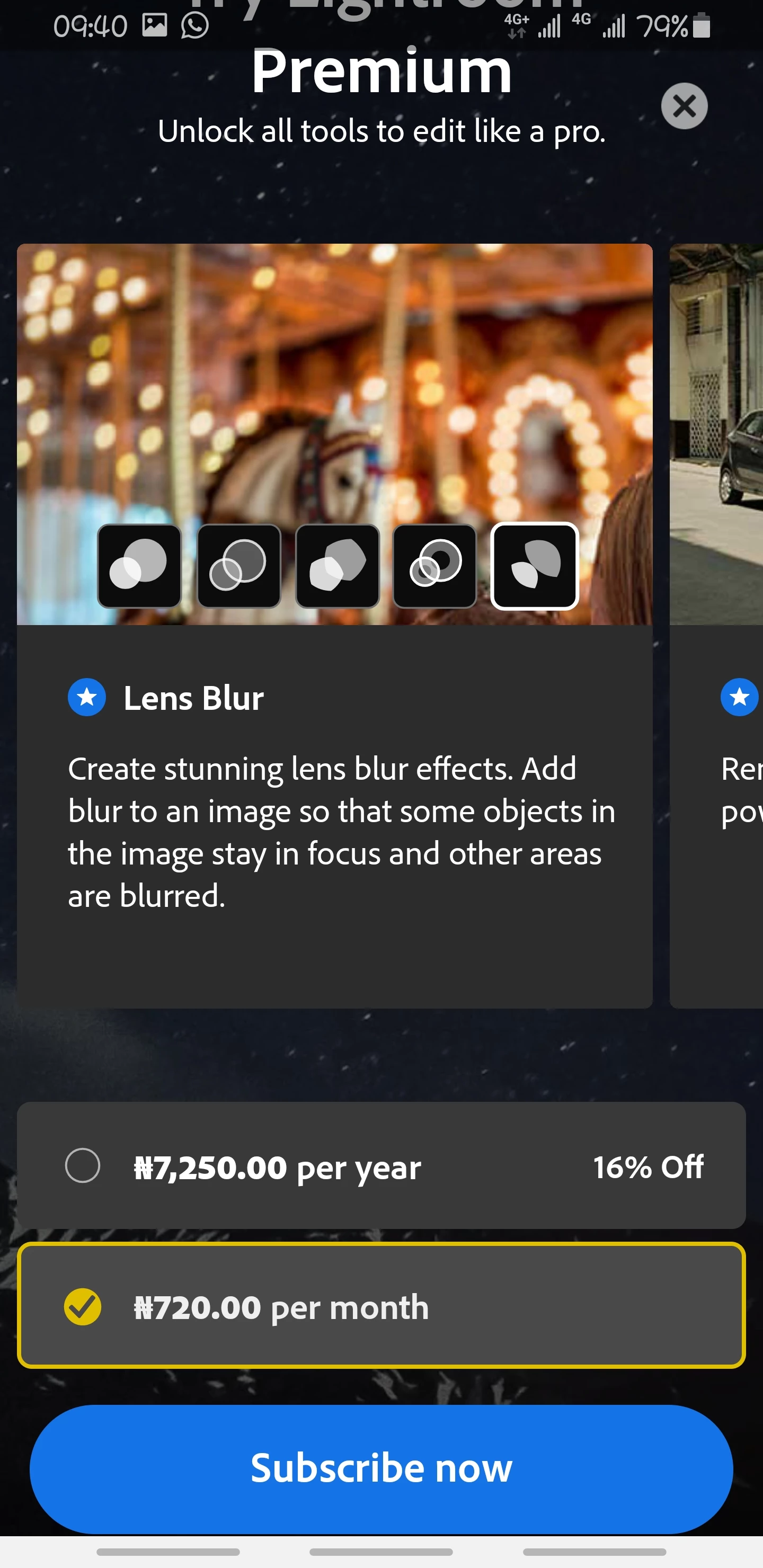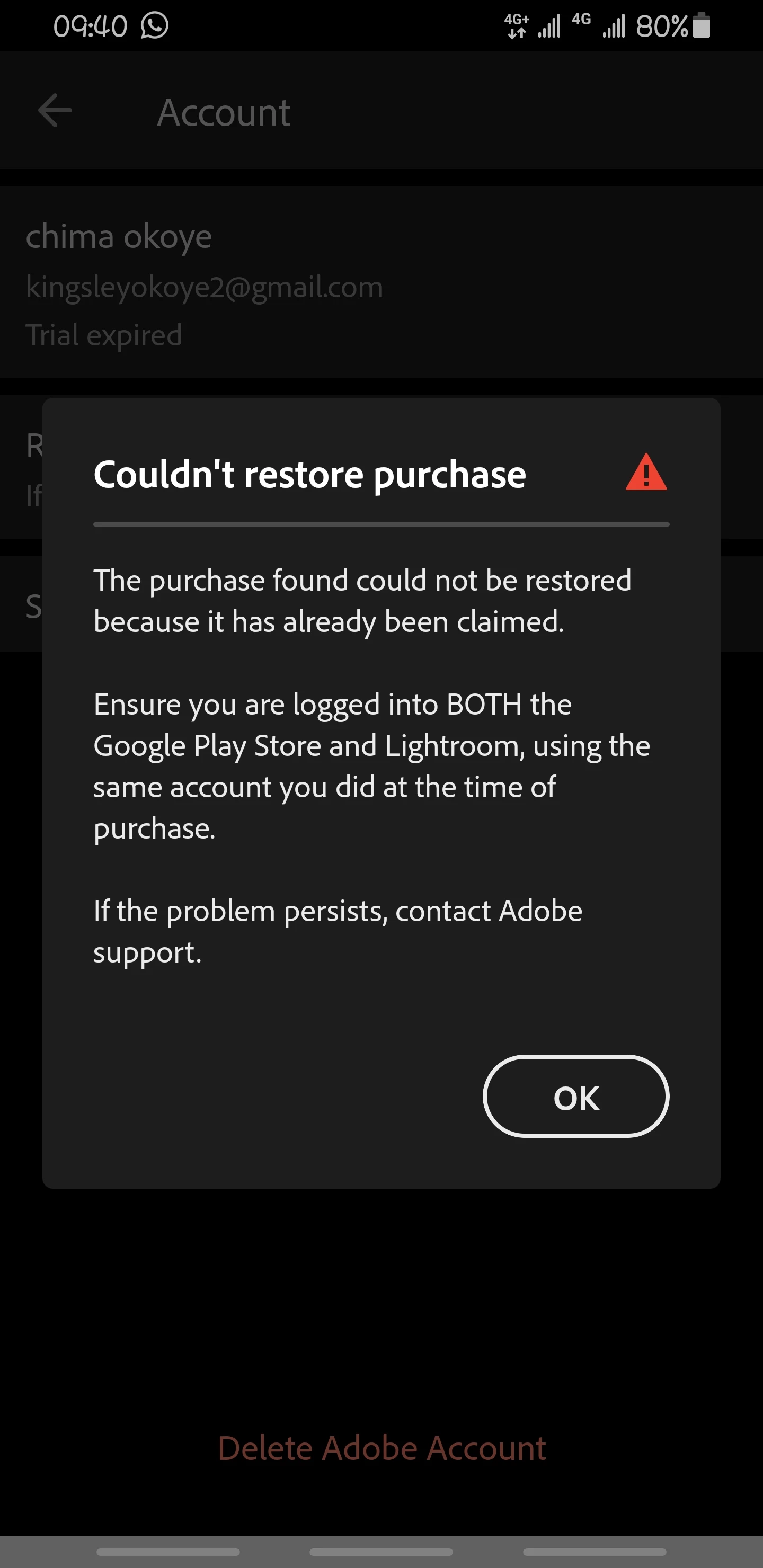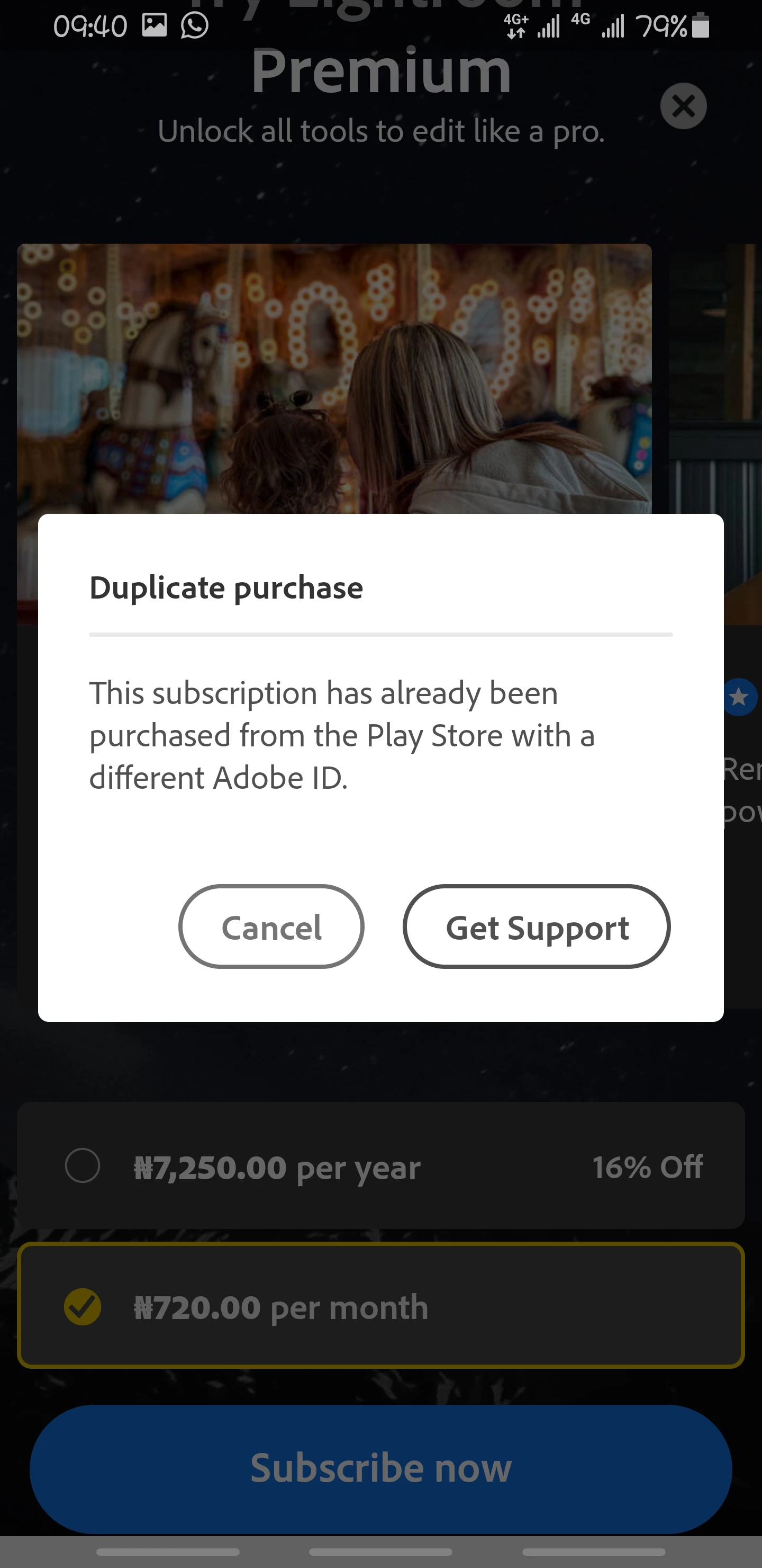 I made an in-app purchase in Adobe lightroom mobile to use the premium features but it doesn't work, tried to restore purchase, even tried re-subscribing but to no avail. this same thing happened last month as well, I had to wait a whole month to try subscribing again only to encounter this same problem. complained last month after encountering this problem but no one in the app development team did jack.