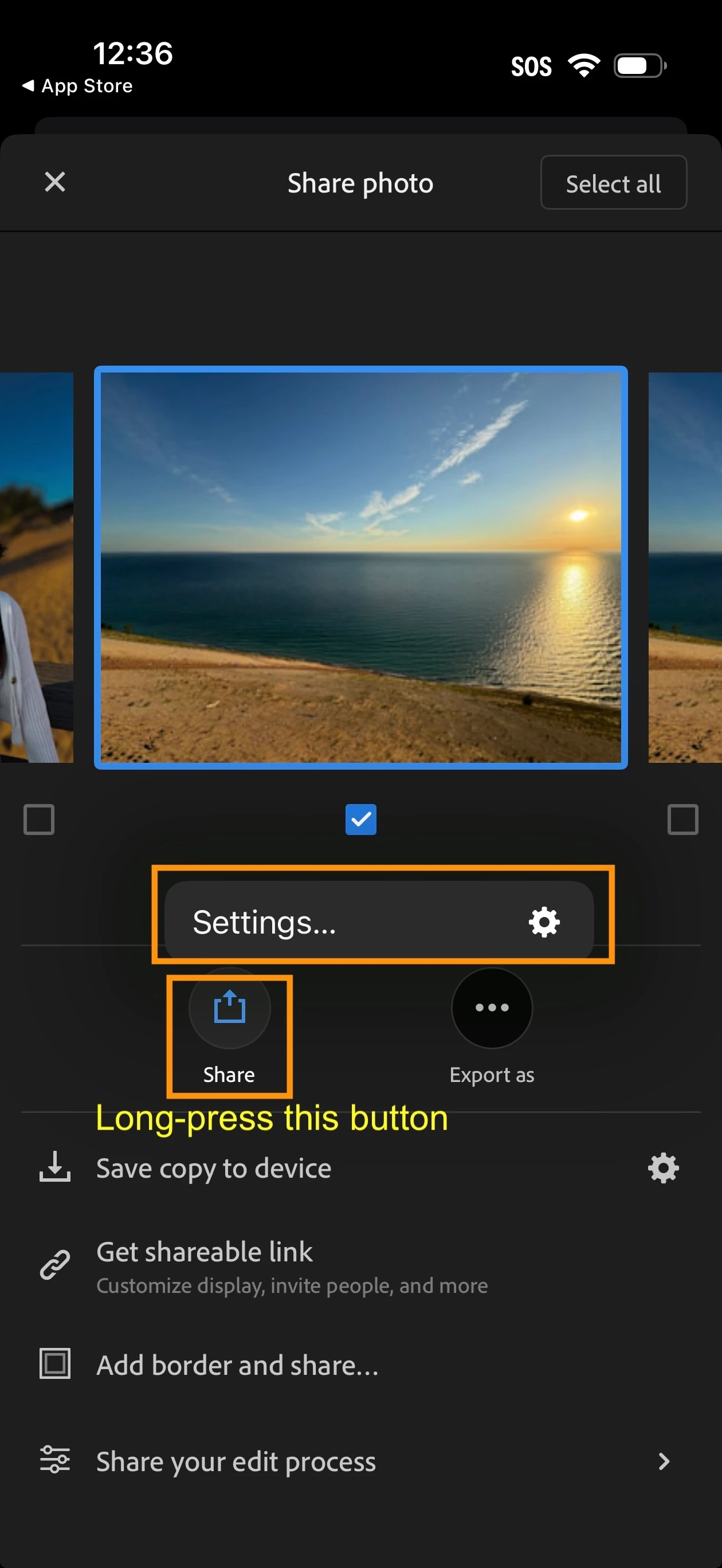 Normally I can set resolution and some other settings if I want to „share“ photos and save it to my iCloud.