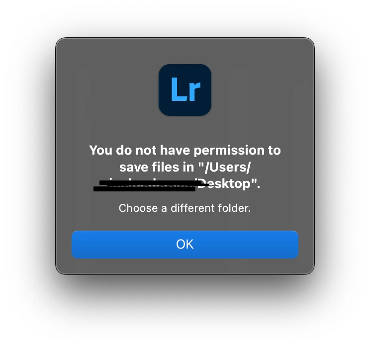 Cannot export from Lightroom to any location on MacOS