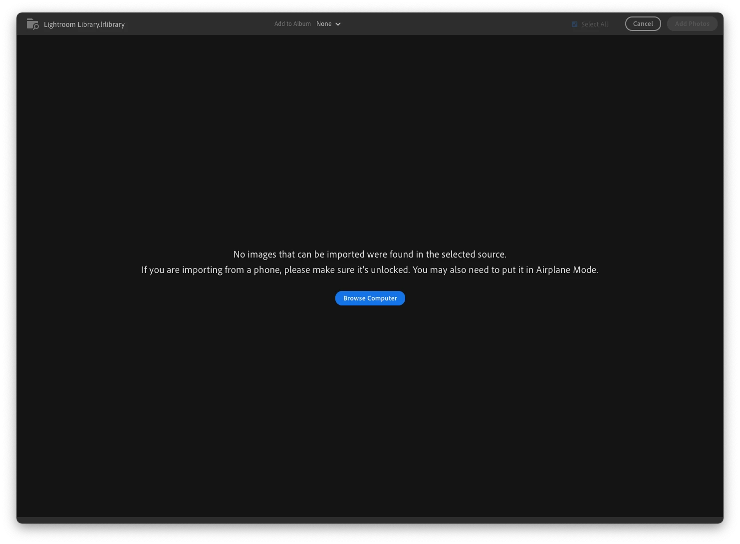 So I recently purchased my own Creative Cloud account after being on a shared account for a few years, and when I went to open Lightroom CC today, there were no photos at all. I still have my .lrlibrary file in my Photos folder on my mac (it's 110GB), and when I try to drag it into Lightroom CC, I get this message: