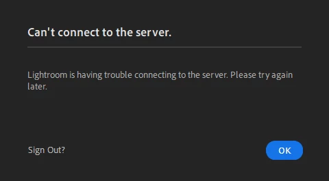 Lightroom is having trouble connecting to the server please try again later.